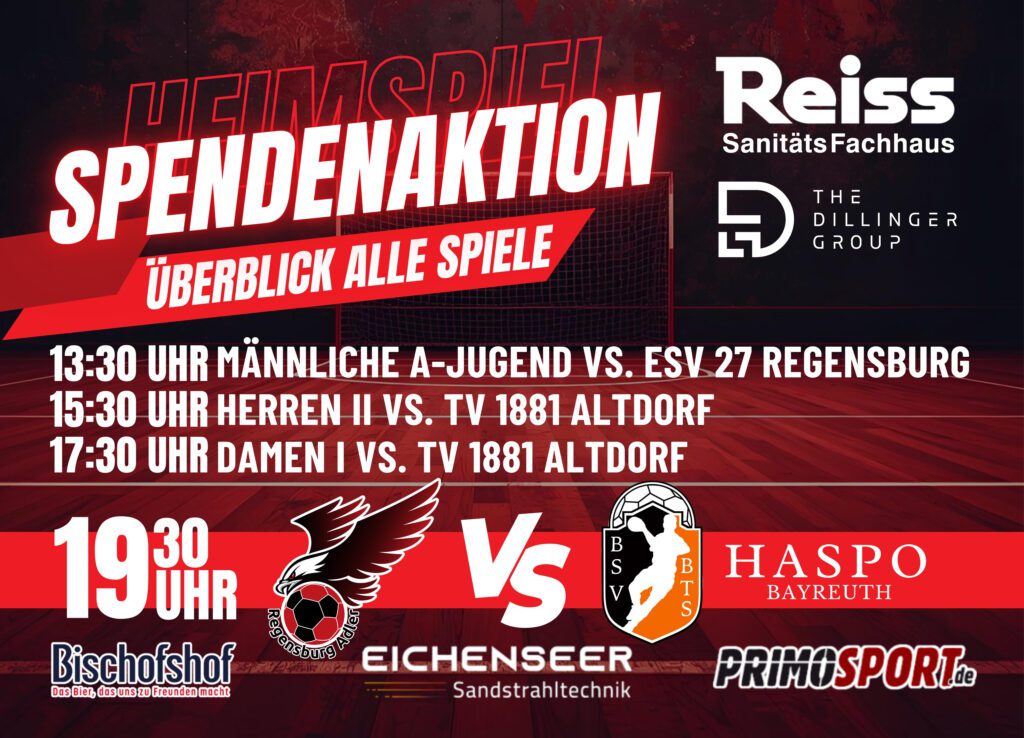 Am kommenden Samstag steht in der Kerschensteiner Halle alles bereit für ein echtes Handball-Highlight: Um 19:30 Uhr trifft der Tabellendritte Adler Regensburg auf den aktuell souverän führenden Spitzenreiter HaSpo Bayreuth. Sportlich ist es das Gipfeltreffen der Stunde – und gleichzeitig ein Spiel mit Herz, denn parallel findet die große Spendenaktion „Rengschburger Herzen“ statt.